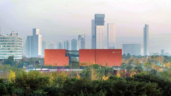 在天府之檐附近,一栋红棕色的方形建筑格外醒目——这就是四川名人馆。场馆建筑设计以“立体的四川山水文脉”为核心定位,将蜀山、蜀道、绿谷的地域特色与现代建筑美学巧妙熔铸。设计团队将四川名人比作构筑文化山脉的基石,通过对建筑体块的切割与重塑,让整栋建筑呈现出蜀山般错落有致的块面感与立体感。红棕色的立面材质搭配利落的几何线条,既复刻出蜀山的苍劲质感,又赋予建筑现代简约的视觉张力。