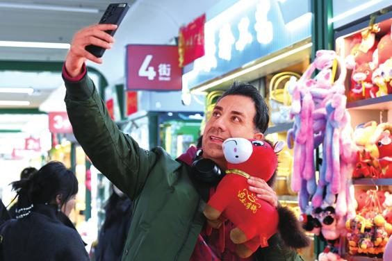 来自芬兰的外商与“哭哭马”小马公仔玩具合影。