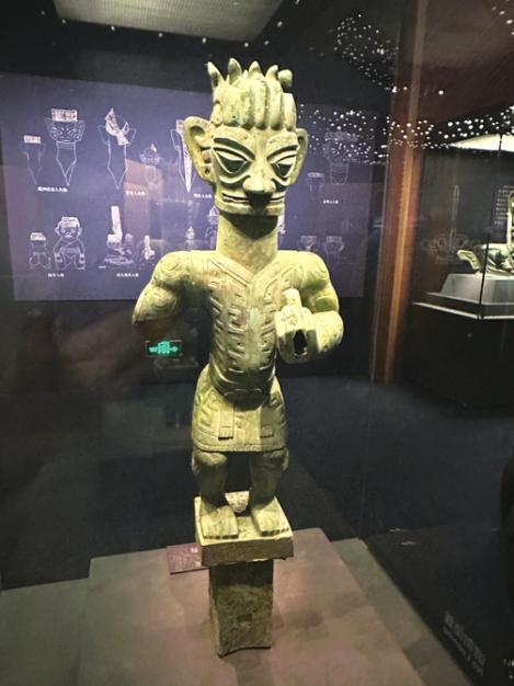 青铜着裙立人像。