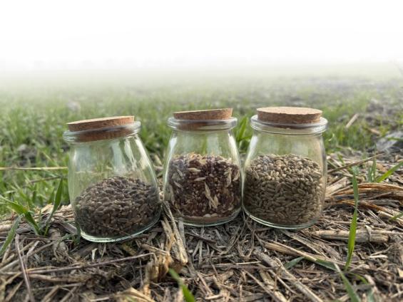 如何分辨彩色小麦和普通小麦呢?杨艳霞说,目前田里的麦子还处于麦苗阶段,现在种植的紫色小麦品种比普通小麦矮小一些,如果只从叶片或外形来看其实差别不大,一般很难分辨。随后,她向记者展示了紫色、黑色、绿色等颜色的麦粒,“最直观的办法是等麦子结出麦穗,通过麦穗颜色来进行分辨。”