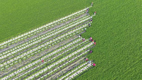 遂宁市蓬溪县红江镇,工人们在拔萝卜。 谭皓摄