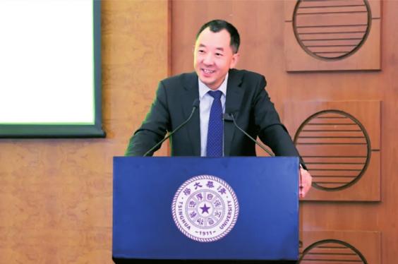 陈行甲2025年12月6日在清华大学演讲。图据深圳市恒晖公益基金会官网