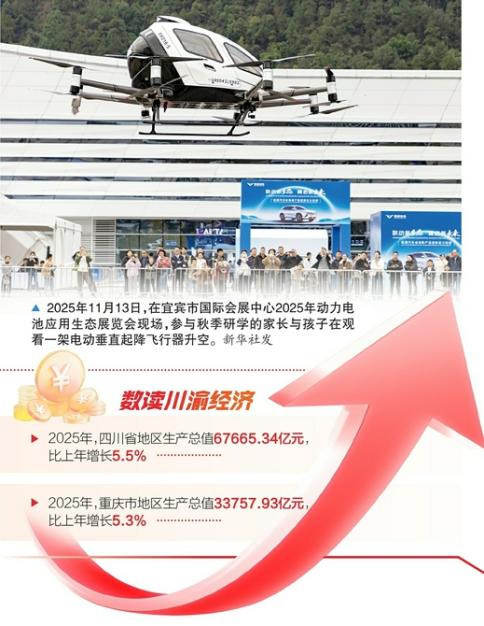 2020年1月3日,中央财经委员会第六次会议明确“要推动成渝地区双城经济圈建设,在西部形成高质量发展的重要增长极”。6年来,这一国家战略从开局起步到整体成势。重庆市、四川省统计局数据显示,2025年,重庆市地区生产总值33757.93亿元,四川省地区生产总值67665.34亿元,分别比上年增长5.3%、5.5%。