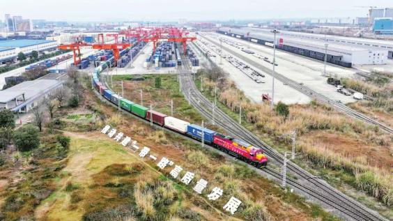 1月1日,一列装载乐山高品质水泥、成都玻纤的西部陆海新通道“蓉桂琼”(成都—钦州—洋浦港)铁海联运班列从成都国际铁路港鸣笛启程,货物经铁路运抵广西钦州港后,由海运转至海南洋浦港出境。 图据成都青白江微信公众号