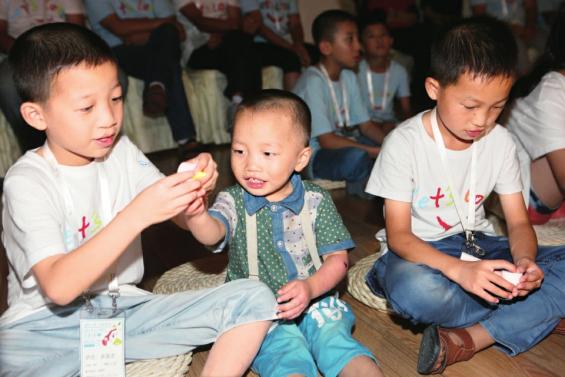 2013年7月26日,参加由嫣然天使基金会发起的唇腭裂患儿家庭亲子夏令营活动的儿童在玩耍。 图据新华社客户端