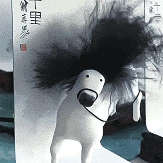刘霄表示,齐白石是一位具有童心童趣的画家,所以在创作这幅作品时没有因循守旧,而是带着童心创作出了极具个人特色的《如此千里》。文创“马彪彪”正是以该画作为原型,对画中之马做了进一步的夸张呈现,更结合山东淄博市非遗代表性项目泥塑(软陶制作)制作而成。“与非遗结合,也是我们文创的一大特色。这款软陶文创是手工捏制的,一位泥塑师傅每天只能捏制20匹小马,所以每一件都是独一无二的。”