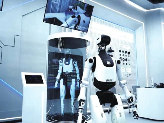 2025年9月6日,在全球工业互联网大会上展示的人形机器人。 新华社发