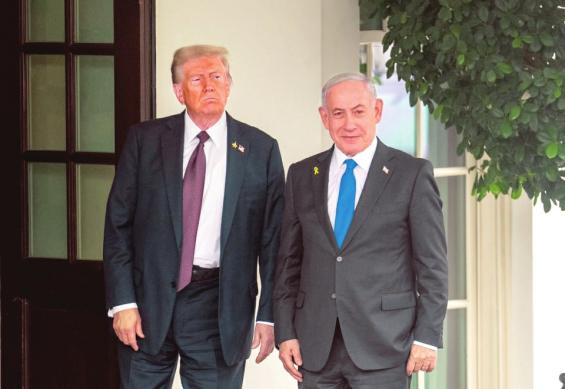 2025年9月29日,在美国首都华盛顿白宫,美国总统特朗普迎接到访的以色列总理内塔尼亚胡。 图据新华社客户端