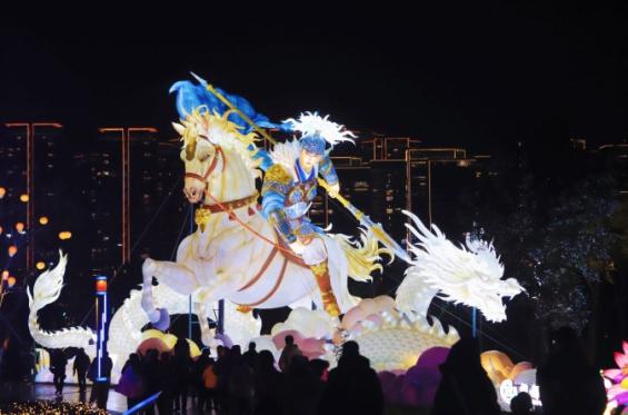 本届灯会围绕国宝、蜀道、三国、诗词、驿马、客家等四川特色文化元素,通过40余组彩灯,在330余亩的溪峰岛上呈现“五区一心”赏灯带——“川灯开新篇”“锦城烟火盛”“蜀道马蹄疾”“古驿桃花香”“兴旺幸福年”和“溪峰之巅”,并创新开展IP联创、场景融合、演艺互动等方式,有机融入“蓉城囍事”“少必入川”“清廉蓉城”等品牌元素,着力打造可观、可游、可感、可消费的沉浸式彩灯世界,为市民游客呈现了一场兼具文化底蕴与现代活力的沉浸式文旅盛宴。