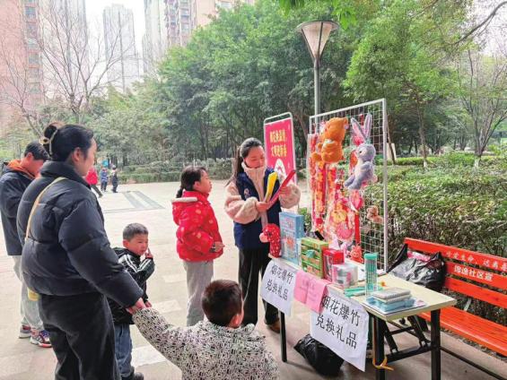 “过年期间,在成都市区不能燃放烟花,只有周边8个县(市)的部分区域才可以。可燃放时段仅限除夕、初一、初二、正月十五四天。”2月4日,成都市锦江区天涯石小学逸景分校6年级1班的张博文来到锦逸社区设在小区里的烟花爆竹置换点,在流利背诵烟花爆竹燃放时间、区域规定后,用手里的烟花兑换了心仪的礼品。同时,他还表示将承担“小小宣传员”职责,积极向邻里亲朋传播烟花燃放的相关安全知识。据悉,这是锦江区柳江街道探索以“烟花换年货”活动为切入点,推动烟花爆竹安全管控源头治理与社会共治相结合的一个缩影。