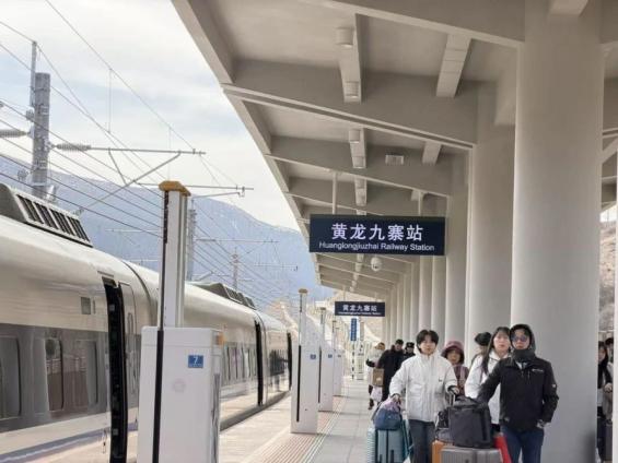 旅客到达目的地黄龙九寨站。图据新华社客户端