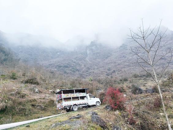 沿着盘山公路不断向上,耳朵开始嗡鸣。小货车喇叭里的叫卖声,在浓雾中传出很远。