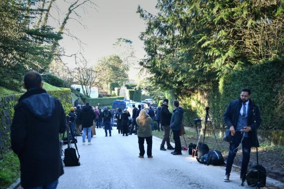 2月26日,记者在瑞士日内瓦阿曼驻日内瓦外交代表机构附近等待。新华社发