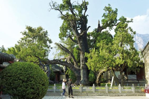 在“一步千年”的河南,除了璀璨耀眼的人文历史外,同样有着见证时光的“活化石”,即古树名木资源。李志强介绍,在嵩山,除了这两株柏树外,中岳庙里还有300余株柏树。而中岳庙,前身便是上文中汉武帝命令扩建的太室祠。2010年,包括中岳庙、嵩阳书院、少室阙、启母阙在内的“天地之中”历史建筑群被列为世界文化遗产。此外,永泰寺内有一株树龄达到1500年以上的娑罗树,法王寺中有两株树龄近2000年的银杏树,嵩岳寺中也有一株近千年树龄的国槐。据河南省林业局官方网站消息,嵩山风景名胜区域内古树名木共计1118株,其中一级古树名木194株。