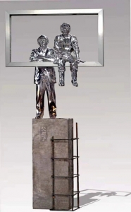 四川雕塑家谭云雕塑作品《父与子-中国农民工纪念碑》获中央电视台雕塑大赛二等奖。