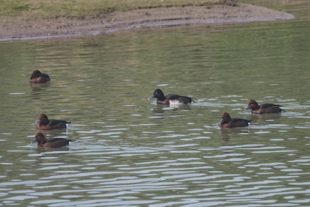 青头潜鸭(圈中)“藏身”水鸟中间。