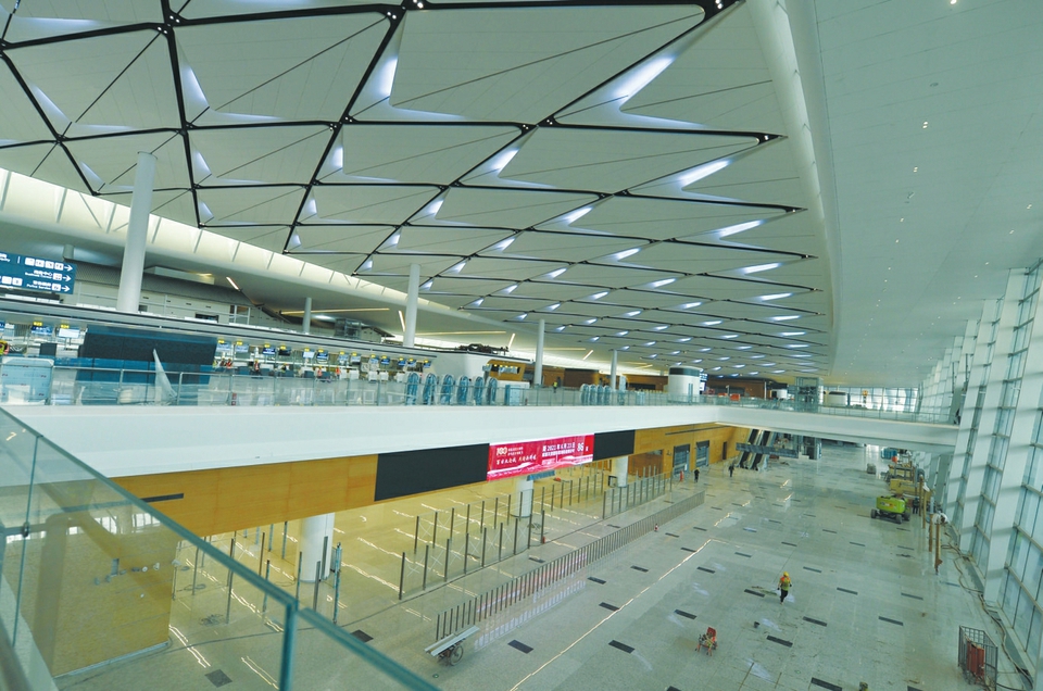 目前,T1航站楼商业区、值机岛、自动扶梯、安检区、贵宾休息室等均已基本完成,机电安装和行李系统调试已进入收尾阶段。接下来会有600余个工人继续进行后期收尾工作,约300人的保洁队伍会对楼内进行全面打扫清理。