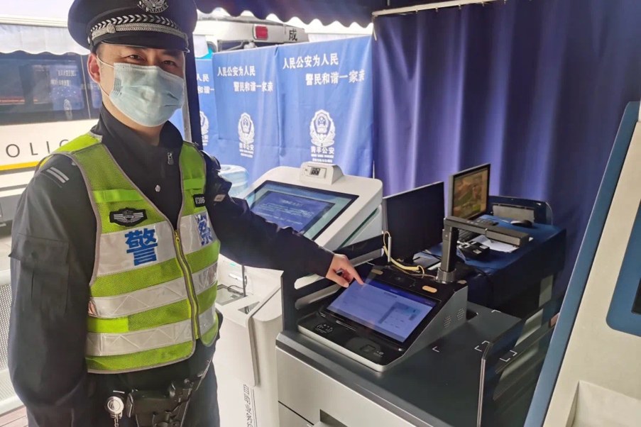 ◀便民警务站配有签注卡式自助一体机、公安户政业务终端机、交通违章自助缴费机等便民设备。
