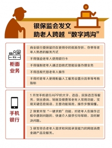 为此,《通知》要求保留和改进传统金融服务方式,明确银行保险机构优化网点布局,发展服务老年人的特色网点。同时尊重老年人使用习惯,保留和改进人工服务,完善柜面服务和应急保障措施。
