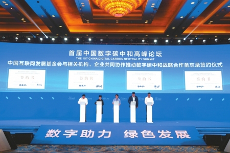 中国互联网发展基金会与相关机构、企业共同协作推动数字碳中和战略合作备忘录签约仪式。 (主办方供图)