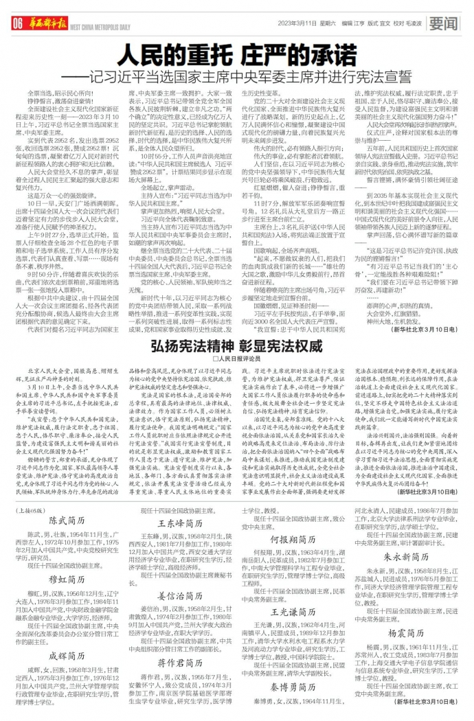 ——记习近平当选国家主席中央军委主席并进行宪法宣誓