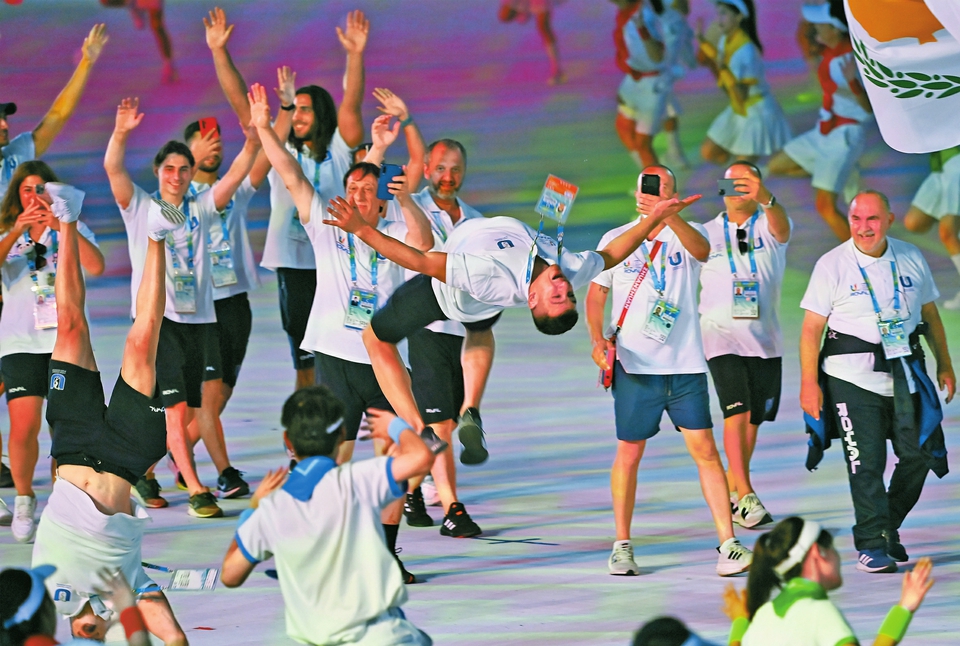 7月28日,塞浦路斯大学生体育代表团在开幕式上入场。新华社发