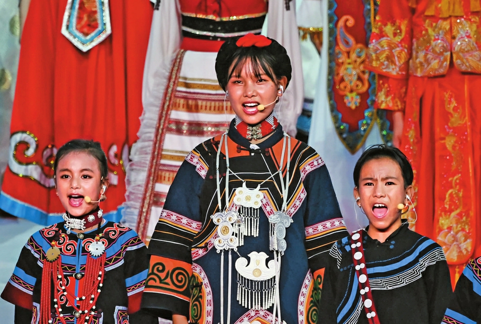 7月28日,吉好有果(中)在开幕式上表演。新华社发