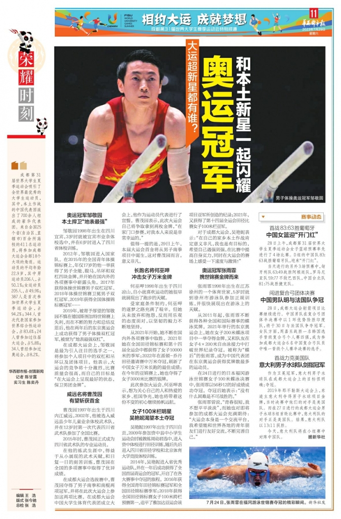 张雨霏曾说,“青春很短,我不想平平淡淡”,而她也对即将参加的成都大运会充满期待:“大运会本身是一个交流平台,我希望能和世界各地的青年朋友们进行友好交流,不断完善自己。”华西都市报-封面新闻