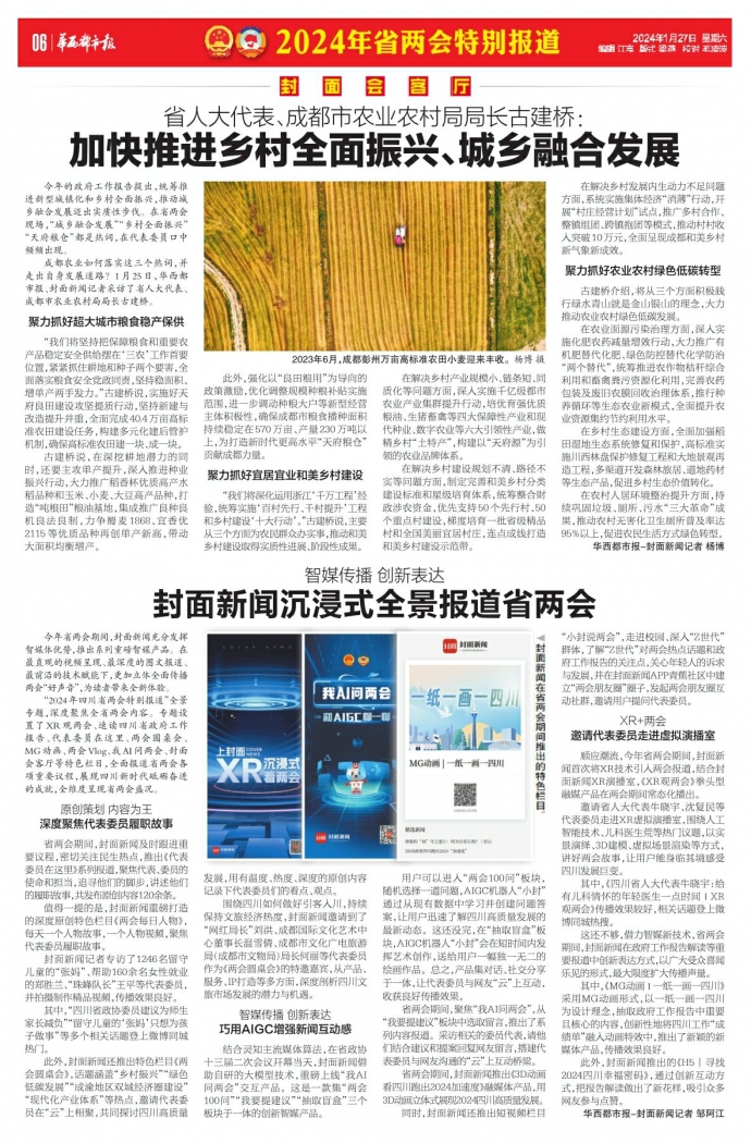 今年的政府工作报告提出,统筹推进新型城镇化和乡村全面振兴,推动城乡融合发展迈出实质性步伐。在省两会现场,“城乡融合发展”“乡村全面振兴”“天府粮仓”都是热词,在代表委员口中频频出现。