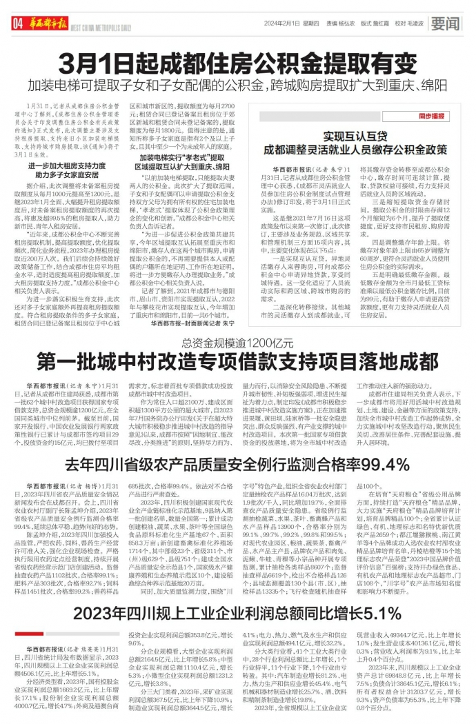作为常住人口超2100万、建成区面积超1300平方公里的超大城市,自2023年7月国务院办公厅印发《关于在超大特大城市积极稳步推进城中村改造的指导意见》以来,成都市按照“因地制宜、能改尽改、分类推进”的原则,坚持尽力而为、量力而行,以消除安全风险隐患、不断提升城市韧性、补短板强弱项、增进民生福祉为着力点,制定印发《成都市积极稳步推进城中村改造实施方案》,正在加速推进果堰、黄田坝、陆家桥等一批安全隐患突出、群众反映强烈、有产业支撑的城中村改造项目。本次第一批国家专项借款资金的投放落地,将为全市城中村改造工作推动注入新的强劲动力。