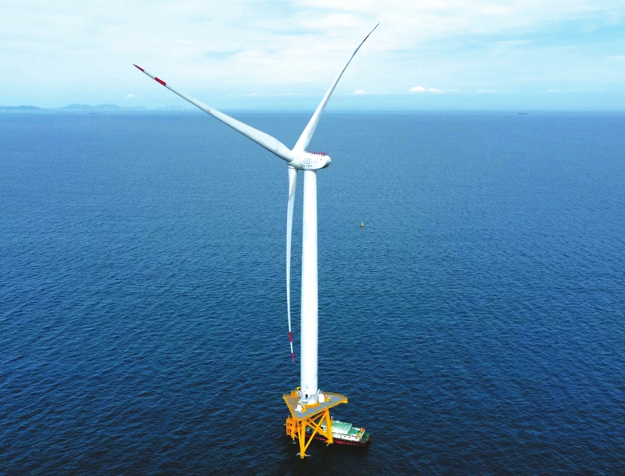 126米叶片风电机组矗立在海面上。东方电气供图