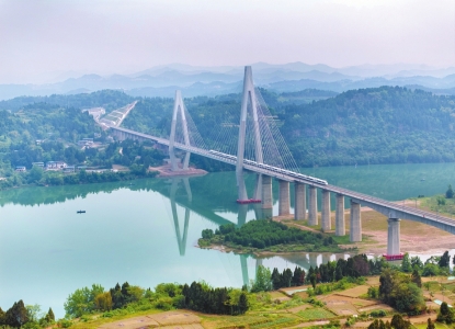 一列调试列车经过巴南高铁嘉陵江大桥(5月15日摄)。新华社发