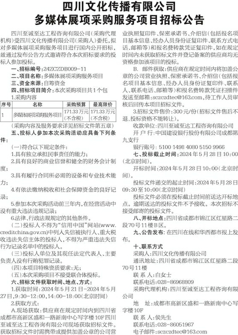 四川文化传播有限公司多媒体展项采购服务项目招标公告