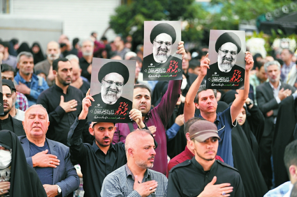 5月20日,在伊朗首都德黑兰,民众悼念直升机坠毁事件遇难者。新华社发