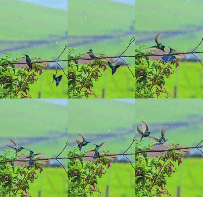由于超强的翅膀灵活性,蜂鸟可以向任意方向飞行,因此预判蜂鸟的飞行方向也成了一件很困难的事,这也给摄影师的拍摄带来了很大的麻烦。