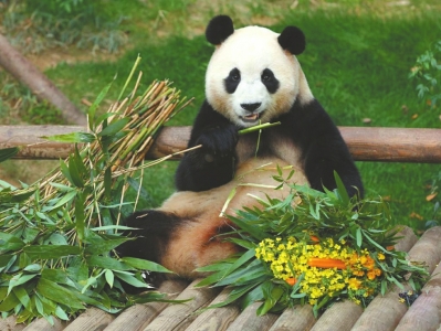 3月3日,大熊猫“福宝”在位于韩国京畿道龙仁市的爱宝乐园享用美食。新华社发