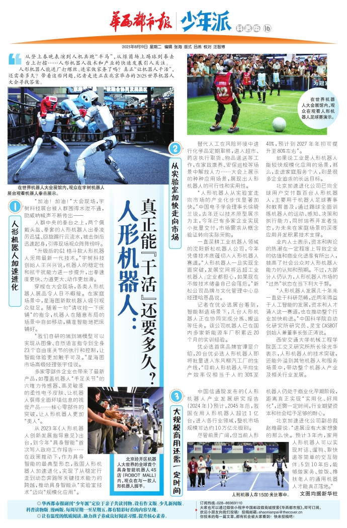 人形机器人能进厂打螺丝、进家做家务了吗?真正“让机器人干活”,还需要多久?带着这些问题,记者走进正在北京举办的2025世界机器人大会寻找答案。