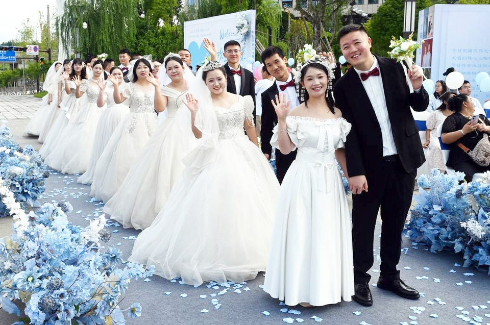 8月29日,内江市东兴区10对新人举行集体婚礼。兰自涛 摄