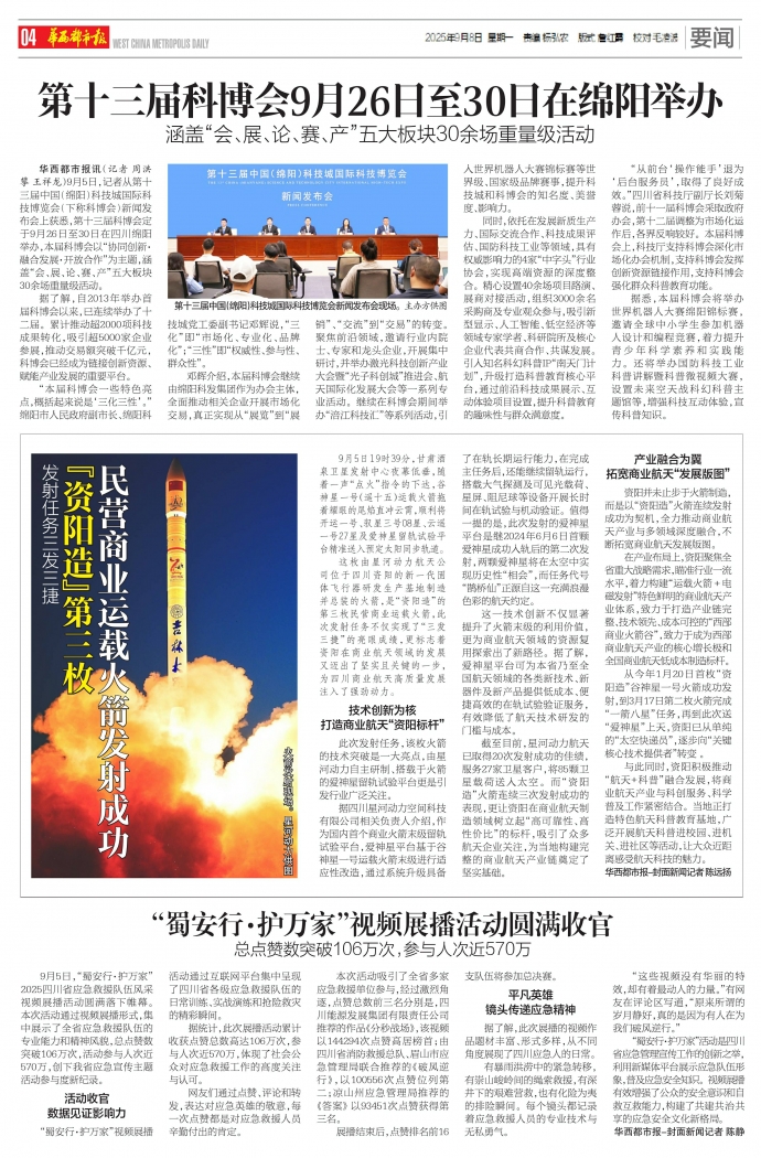 9月5日,“蜀安行·护万家”2025四川省应急救援队伍风采视频展播活动圆满落下帷幕。本次活动通过视频展播形式,集中展示了全省应急救援队伍的专业能力和精神风貌,总点赞数突破106万次,活动参与人次近570万,创下我省应急宣传主题活动参与度新纪录。