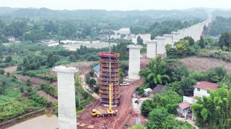 成渝中线高铁姚家坝特大桥最后一墩成功封顶。姚阳摄