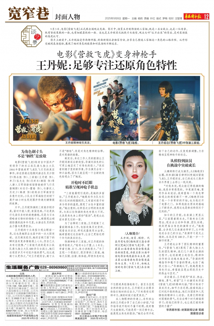 影片上映前夕,王丹妮接受华西都市报、封面新闻记者独家专访,分享自己塑造三家姐这一角色的心路历程。从外形突破到表演感悟,展现了她对角色的敬畏和对表演的不懈追求。