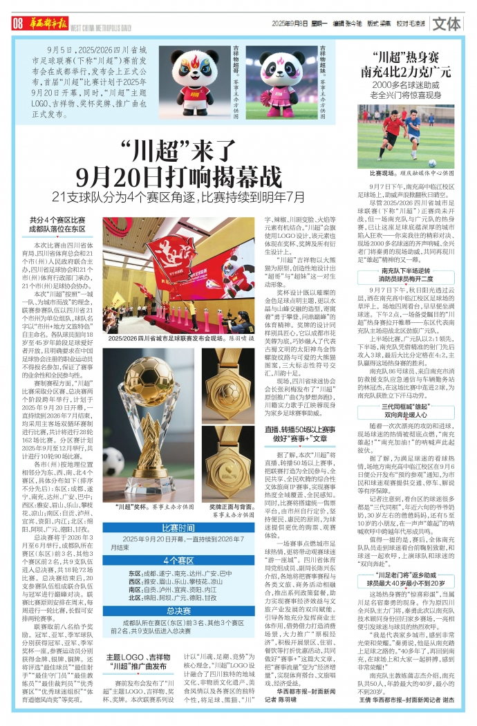 “川超”来了 9月20日打响揭幕战