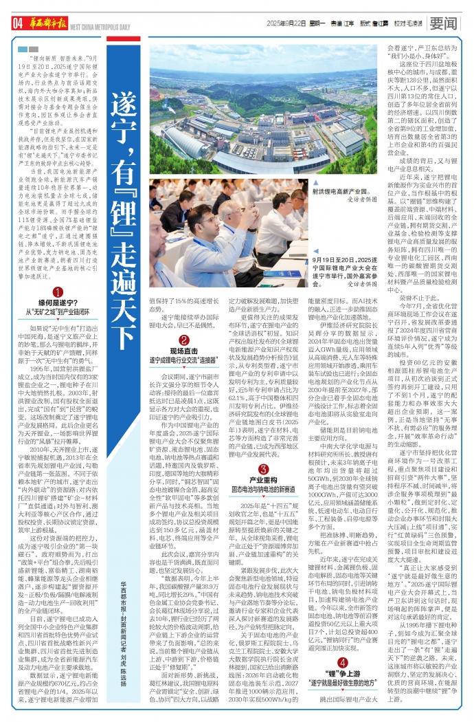 从1995年播下锂电种子,到如今成为汇聚全球目光的“锂电之都”,遂宁走出了一条“有‘锂’走遍天下”的逆袭之路。未来,这座城市将以敏锐的产业洞察力、坚定的发展决心、优质的营商环境,在能源转型的浪潮中继续“锂”争上游。华西都市报-封面新闻记者 刘虎 陈远扬