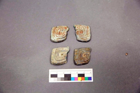 刘百舸表示,从目前的发现来看,三星堆青铜器的色彩有黑色和红色两种,红色常见于青铜容器以及人物服饰的细密纹饰凹槽里,也出现在青铜神树的花瓣上;黑色则多见于青铜人像和青铜面具,用来绘制人物的眉毛眼睛头发等部位,也用来绘制一些特殊的图案和符号。