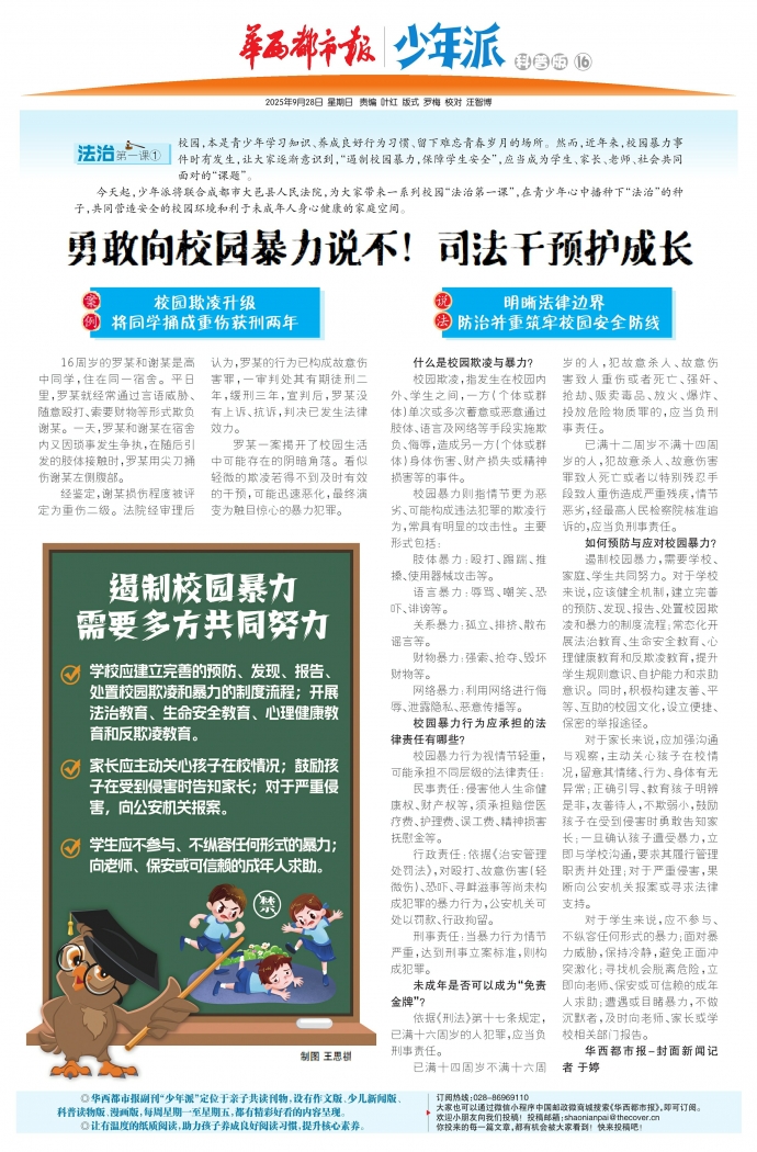 今天起,少年派将联合成都市大邑县人民法院,为大家带来一系列校园“法治第一课”,在青少年心中播种下“法治”的种子,共同营造安全的校园环境和利于未成年人身心健康的家庭空间。