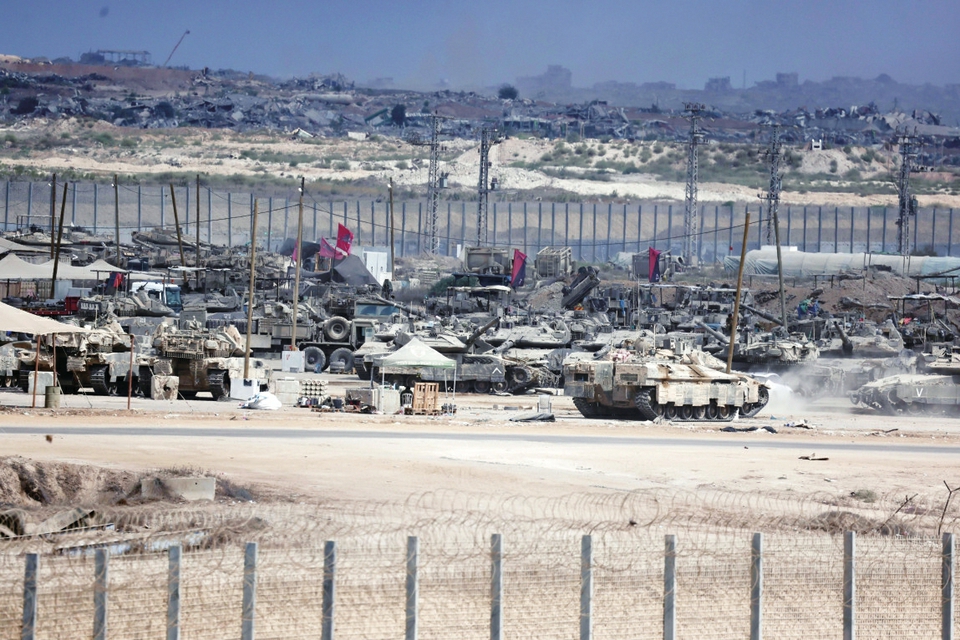 10月9日拍摄的位于加沙边境以色列一侧的以军部队。新华社发