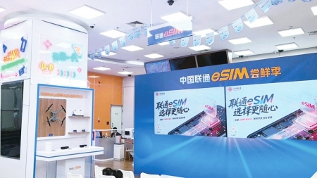 中国联通北京西单营业厅内的eSIM业务展示。 图据新华社客户端