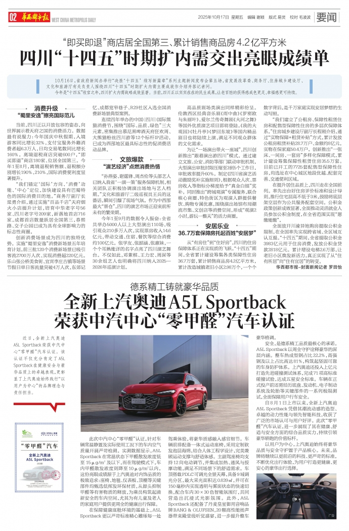 自8月1日上市以来,全新上汽奥迪A5L Sportback凭借其潮流动感的造型、卓越的动力性能与领先智能科技,收获了广泛的市场认可与用户好评。此次“零甲醛”汽车认证,进一步展现了其在健康、舒适与安全方面的综合品质实力,持续引领豪华轿跑的价值标杆。