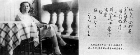 1949年10月25日,朱枫临行台湾前寄给丈夫的照片。