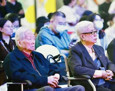 首发式结束后,王火和李致两位老人在大家的护送下离开会场。临别时,坐在轮椅上的两位老人紧紧地握着彼此的手,诉说着保重。